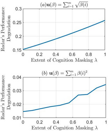 翻译:认知雷达是一种有限的工具最大化, 用于根据不断变化的环境调整其感知模式。 如果对手能够估计认知雷达的功用功能, 它可以确定雷达的感测策略, 并通过电子反措施( EMM) 来降低雷达的性能。 本文讨论认知雷达如何能从检测认知的对手那里隐藏其战略。 雷达通过向对手的内曼- 皮尔逊探测器发送故意设计的亚最佳反应来进行。 我们通过确保对敌探测器的I型误差概率超过对雷达性能损失的特定容忍程度, 提供理论保证。 我们通过涉及波形适应和感应分配的数字例子来说明我们的认知雷达隐蔽计划。 我们显示, 雷达的最佳战略有意识的微小偏差, 从而掩盖了雷达的知觉。 我们的方法使用了从显露的微观经济偏好和反向反反向强化学习的新思维。 我们提议的算法为系统级的内端雷达战略提供了一种有原则性的方法, 我们的内定型雷达的内存性战略也提供了我们的内衣。
