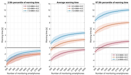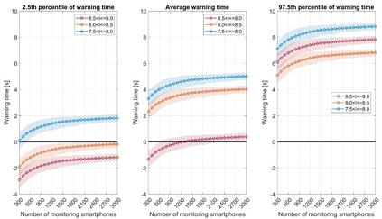 翻译:由公民科学倡议实施的智能手机地震预警系统的特征是智能电话网络几何特征差异很大,直接影响到该系统的地震探测能力和性能,这里采用蒙特卡洛方法的模拟框架,对地震探测的相关数量进行推断,如与震中距离的探测、探测延迟和接触高地面震震灾的人的警报时间等,该框架适用于过去几十年中曾经历致命地震的海地,以及地震网络公民科学倡议网络,该网络在该国很受欢迎,发现该倡议在民众中的渗透程度相对较低,因此能够提供强有力的预警服务,对面临经修改的Mercalli规模7.5至8.5之间的强度的人,警告次数高达12秒。