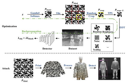 翻译:热红红红外成像广泛用于体温测量、安全监测等,但其安全研究直到最近几年才引起注意。我们建议红外对抗衣物,这种服装可以在不同角度愚弄红外行探测器。我们在数字世界从衣物到衣物的模拟过程,然后设计对抗性“QR码”模式。我们的方法核心是设计一个可以定期扩展的基本模式,使随机裁剪和变形后的格局仍然具有对抗效应,然后我们可以用对抗模式处理平板布板,将其加工成任何3D服装。结果显示,优化的“QR码”模式将YOLOv3的平均精度降低了87.7%,而随机的“QR码”模式和空白模式将数字世界的YOLOv3的AP分别降低了57.9%和30.1%。 我们随后用新的材料制造了对抗性衬衣物:arogel。物理世界实验显示,对抗性“QR码”模式服装将YOLO3的AP值平均精度降低了64.7%,而随机的“QR代码”改进了YOLOV3的温度为22调调制,而我们则使用了随机的MA变低的A值的防腐化的防制模式。
