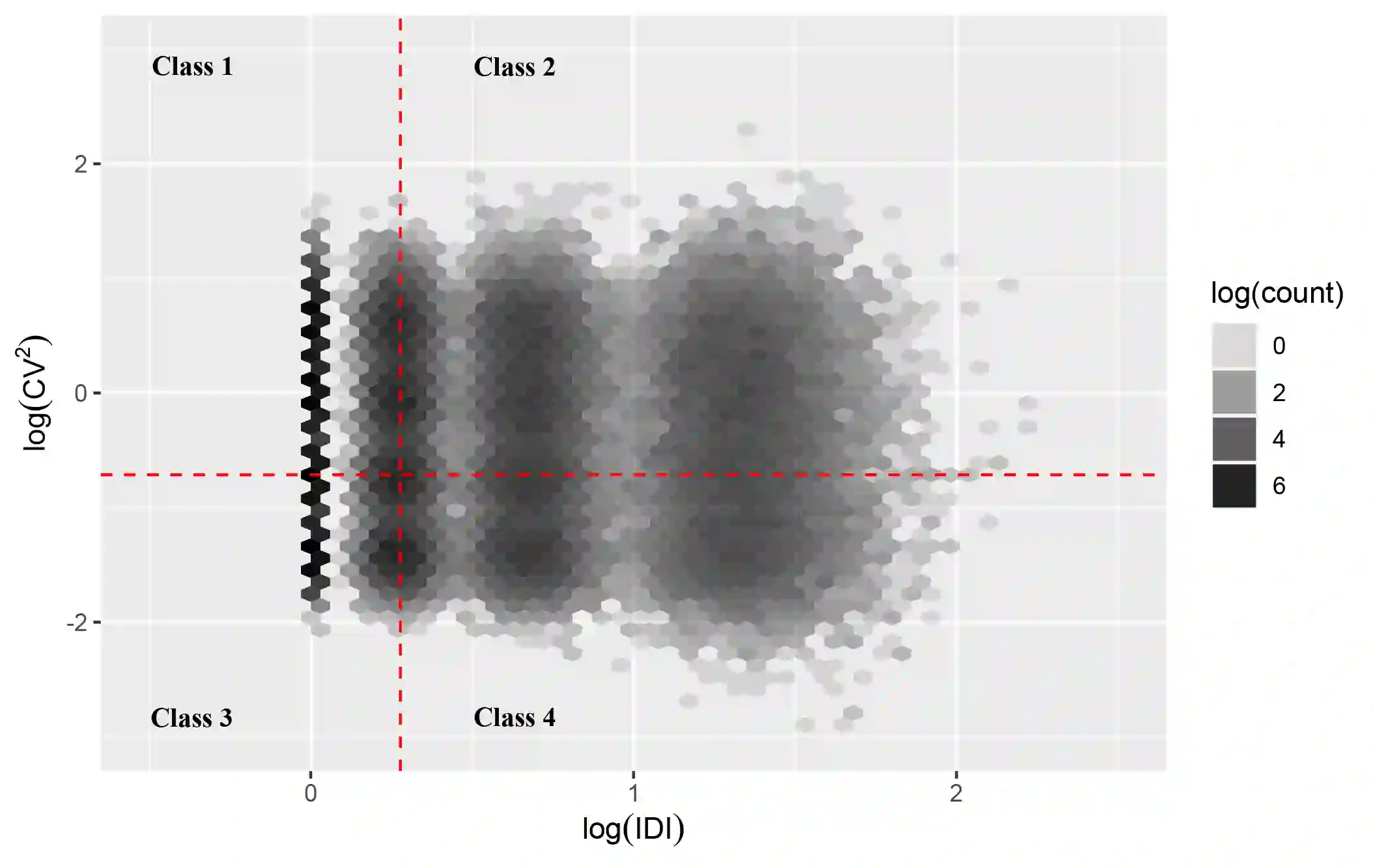 翻译:短期需求预测是业务和供应链管理中普遍存在的、具有挑战性的问题,近年来越来越注重从学术和实践角度对间歇性需求制定预测方法,然而,对预测组合方法的重视有限,因为预测组合方法已证明在预测快速移动的时间序列方面能取得有竞争力的业绩,目前的研究旨在审查某些现有预测组合方法的经验结果,并为间歇性需求预测提出一个通用的基于特征的框架;我们进行模拟研究,对基于间歇性需求分类办法的一系列混合方法进行大规模比较;此外,还利用一套真实的数据集来调查预测业绩,并通过考虑一些补充错误措施,就拟议框架的库存业绩提出见解;拟议框架使预测的准确性大为改善,并为库存控制的灵活性和可解释性提供了潜力。