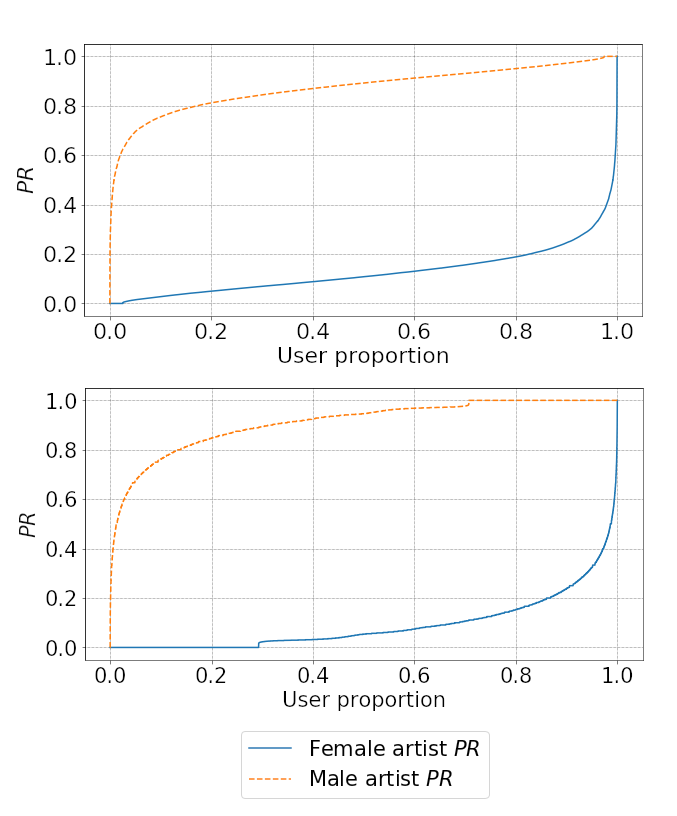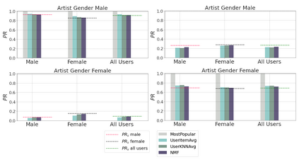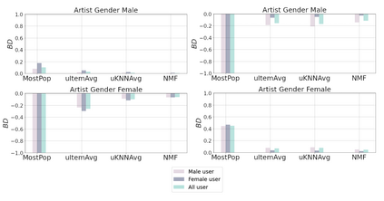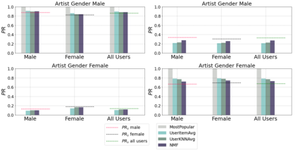 翻译:音乐建议系统(mRS)的设计旨在向用户提供个人化和有意义的项目(如歌曲、播放列表或艺术家)建议,从而反映和进一步补充个人用户的特定音乐偏好。虽然在评价最低要求文献中的建议方面广泛采用了准确度指标,但从其他面向影响的观点(包括其歧视可能性)评估用户的项目效用,从其他面向影响的观点(包括其歧视潜力)来看,仍然是音乐领域的一种新颖的评价做法。在这项工作中,我们把注意力集中在一个具体现象上,我们想估计最低要求是否会加剧其影响:\ textit{性别偏差}。我们的工作是一项探索性研究,分析通常部署的艺术合作过滤算法状态在多大程度上可能进一步增加或减少艺术家的性别偏差。在流行音乐流平台上,%,Last.fm.为了评估CFF提出的群体偏差,我们最近在两个监听事件数据集(LFM-1b数据集和早先建造的Celma数据集)上提出了一种偏差的衡量标准。我们的工作追踪差异的原因,在用户分配和生成性别偏差后,可以突出这种偏差的影响。