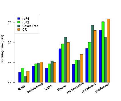 翻译:K- 近邻搜索( kNNN) 在许多领域都有广泛的应用, 包括数据挖掘、 机器学习、 统计和许多应用域。 在混合方法的成功和基于树的方法的灵活性的启发下, 我们提出随机投影森林( rp Forests), 供 kNN 搜索 。 rpForests 找到 kNNS, 方法是将随机投影树的集合结果汇总起来, 每根随机投影树都是通过一系列精心选择的随机投影进行递归的。 rpForests 达到一个惊人的精确度, 即千分之差, 以及千分之差。 rpForests 的计算复杂性非常低。 rpForests 的集合性使得它很容易在多核心计算机或集成计算机上平行运行; 运行时间预计与核心或机器的数量几乎成反比。 我们给出理论洞察的洞察力, 显示相邻点在组合随机投影树体大小增加时被分的概率。 我们的理论理论可以用来改进随机预测的效果。
