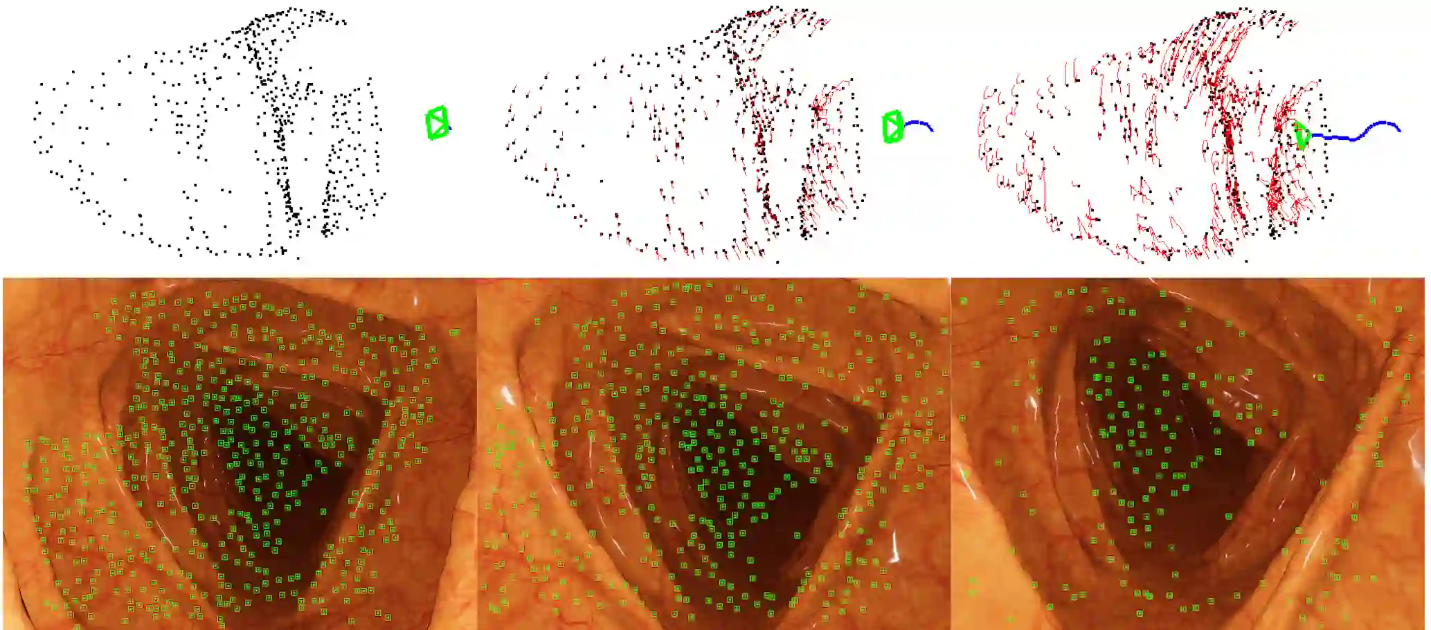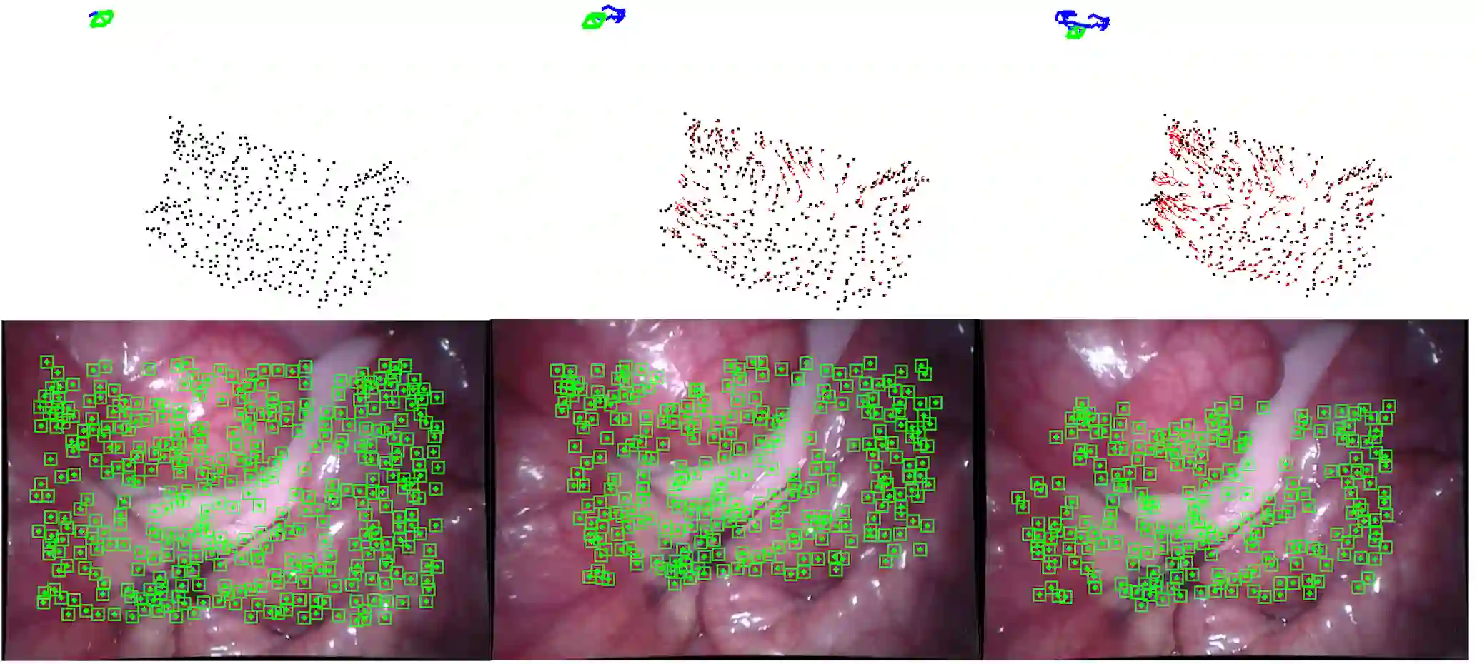 翻译:在变形场景中,单体SLAM将打开通往多种医疗应用的通道,例如计算机辅助导航在内镜检查、自动药物交付或自主机器人手术中的导航。在本文中,我们提议了一种新颖的方法,在不对环境地形或形状作出任何假设的情况下,同时跟踪相机的外形和三维场景变形。该方法使用一种光化异光度光度方法来跟踪图像特征,估计相机的动向和变形,结合对变形的空间和时间的调整。我们在模拟结肠镜中的结果显示这种方法在变形程度不断升高的复杂场景中的准确性和稳健性。我们从安地默普数据集获得的人类结肠镜质量结果显示,该方法能够成功地应对真实端镜的挑战:变形、低质和强烈的光化变化。我们还比较了哈姆林数据集的较简单情况下以前的跟踪方法,在那里我们获得了竞争性的性能,而不需要任何表层假设。