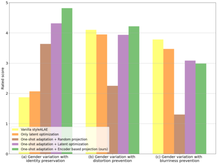 翻译:真实世界面部图像的语义面部编辑是基因模型的一个重要应用。 最近,多部作品探索了利用预先训练过的GAN模型的潜在结构进行这种修改的可能技术。 但是,这类方法往往需要培训编码器网络,通常是一个耗时和资源密集的过程。 以GAN为基础的结构的一个可能的替代方法可以是StyALAE,一个基于潜空的自动编码器,可以生成高质量的照片现实图像。 不幸的是,SysteALAE中重建后的图像无法保存输入面部图像的特性。这限制了StyALE用于对已知身份图像的语义面部编辑的应用。 在我们的工作中,我们利用最近的一次性域适应进展来解决这个问题。我们的工作确保重建后的图像的特性与给定的输入图像相同。我们还利用预先训练过的SyALAE模型的潜在空间对重建后的图像产生语义上的修改。结果显示,我们的方法可以在保存身份的同时对任何真实世界面部图像产生语义上的修改。