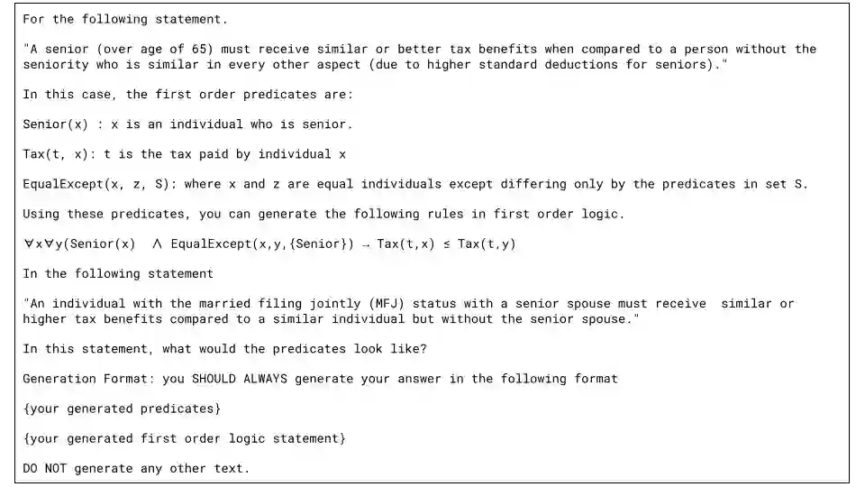Due to the ever-increasing complexity of income tax laws in the United States, the number of US taxpayers filing their taxes using tax preparation software (henceforth, tax software) continues to increase. According to the U.S. Internal Revenue Service (IRS), in FY22, nearly 50% of taxpayers filed their individual income taxes using tax software. Given the legal consequences of incorrectly filing taxes for the taxpayer, ensuring the correctness of tax software is of paramount importance. Metamorphic testing has emerged as a leading solution to test and debug legal-critical tax software due to the absence of correctness requirements and trustworthy datasets. The key idea behind metamorphic testing is to express the properties of a system in terms of the relationship between one input and its slightly metamorphosed twinned input. Extracting metamorphic properties from IRS tax publications is a tedious and time-consuming process. As a response, this paper formulates the task of generating metamorphic specifications as a translation task between properties extracted from tax documents - expressed in natural language - to a contrastive first-order logic form. We perform a systematic analysis on the potential and limitations of in-context learning with Large Language Models(LLMs) for this task, and outline a research agenda towards automating the generation of metamorphic specifications for tax preparation software.