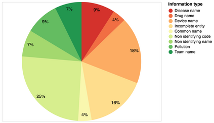 翻译:本研究的目的是解决临床报告去识别化的关键问题,以便让研究人员获取数据,而同时确保患者隐私。本研究重点强调在这一领域分享工具和资源所面临的困难,并介绍了巴黎大区大学医院在其临床数据仓库中实施文本文档的系统化假名化的经验。我们根据12种身份识别实体对临床文档进行了注释,并构建了一个混合系统,合并了深度学习模型以及手动规则的结果。我们的结果显示,F1分数的总体表现为0.99。我们讨论了实施选择,并对更好地理解此任务所涉及的工作量进行了实验,包括数据集大小,文档类型,语言模型或规则添加。我们共享遵循3-Clause BSD许可证的指南和代码。
