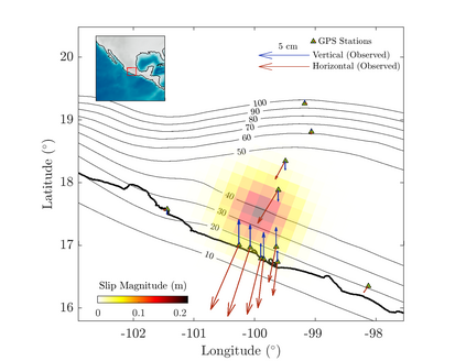 We propose an efficient Bayesian approach to infer a fault displacement from geodetic data in a slow slip event. Our physical model of the slip process reduces to a multiple linear regression subject to constraints. Assuming a Gaussian model for the geodetic data and considering a truncated multivariate normal prior distribution for the unknown fault slip, the resulting posterior distribution is also truncated multivariate normal. Regarding the posterior, we propose an algorithm based on Optimal Directional Gibbs that allows us to efficiently sample from the resulting high-dimensional posterior distribution of along dip and along strike movements of our fault grid division. A synthetic fault slip example illustrates the flexibility and accuracy of the proposed approach. The methodology is also applied to a real data set, for the 2006 Guerrero, Mexico, Slow Slip Event, where the objective is to recover the fault slip on a known interface that produces displacements observed at ground geodetic stations. As a by-product of our approach, we are able to estimate moment magnitude for the 2006 Guerrero Event with uncertainty quantification.