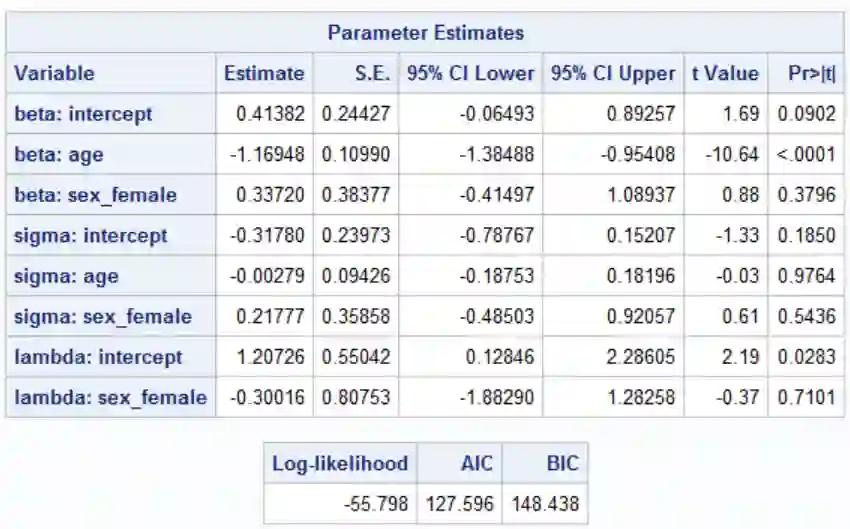翻译:参数生存模型比考克斯模型更便于经济建模。通用伽马(GG)和通用F(GF)分布范围很广,包含几乎所有常用分布分布,具有各种危险形状和任意复杂性。在本研究中,我们提出了一个新的SAS宏观,用于实施各种灵活的参数模型,包括GG和GF分布及其特殊案例,以及Gompertz分布。还支持适当的海关分布。与现行SAS程序不同,这一宏观不仅支持位置参数的回归,而且支持辅助参数的回归,这大大增加了模型的灵活性。此外,SAS宏观支持加权回归、分层回归和有力的推论。本研究用几个例子说明SAS宏观如何用于灵活的生存模型和外推法。