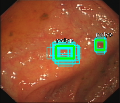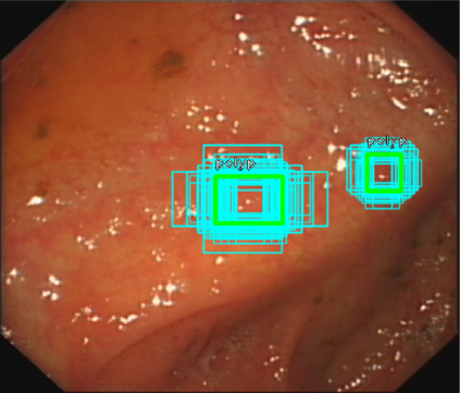 We improved an existing end-to-end polyp detection model with better average precision validated by different data sets with trivial cost on detection speed. Previous work on detecting polyps within colonoscopy \cite{Chen2018} provided an efficient end-to-end solution to alleviate doctor's examination overhead. However, our later experiments found this framework is not as robust as before as the condition of polyp capturing varies. In this work, we conducted several studies on data set, identifying main issues that causes low precision rate in the task of polyp detection. We used an optimized anchor generation methods to get better anchor box shape and more boxes are used for detection as we believe this is necessary for small object detection. A alternative backbone is used to compensate the heavy time cost introduced by dense anchor box regression. With use of the attention gate module, our model can achieve state-of-the-art polyp detection performance while still maintain real-time detection speed.