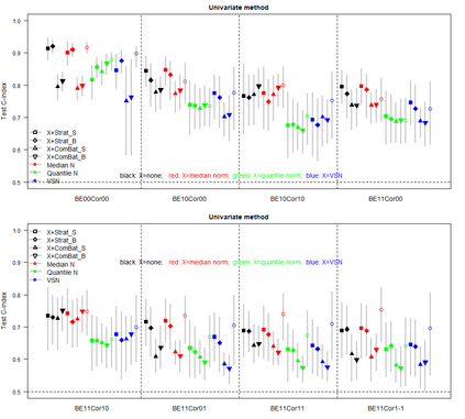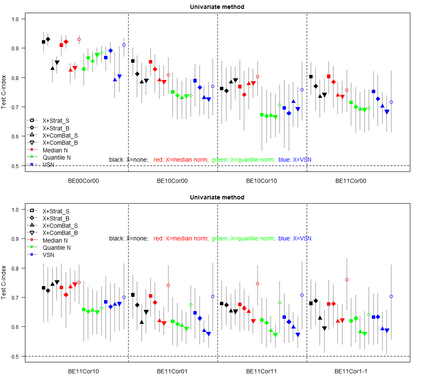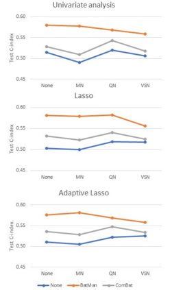 翻译:运算组数据的正常化翻译因批量效应的正常化而受阻。管理批量效应的统计方法最初是在样本组比较时开发的,后来又为生存结果预测等其他设置而借用。最显著的方法是ComBat,该方法将批量调整,将批量与样本组一起纳入线性回归中的共变。然而,在生存预测中,ComBat 使用没有可定义的组群来求生存结果,而是与生存回归相继进行生存回归。为了解决这些问题,我们提出了一个名为BatMan(BatMan)的新的方法(“BATch MitigAtion通过stratificatioN” ) 。该方法将批量调整为生存回归中的层,并使用LASSO等变量选择方法处理高维度回归。我们评估了巴特曼的性能与ComBatt的对比,每件都单独或与数据正常化一起使用,在预测性变现的模型中,根据预测性能信号强度和分批输出环境环境进行模拟研究。我们所作的模拟模型显示(1) BatMan 和BatBatBat Bat 数据在数据中,其性数据在数据中可以进一步进行数据分析中进行数据变变变现。在数据中进行数据变现数据分析,在数据中进行数据变现数据分析时,在数据中进行数据变现数据分析。