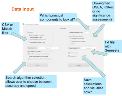 翻译:分析“ 组合” 数据时经常使用主元件分析( PCA) 和其他多变量模型。 这些模型包含许多目前不易获取和解释的信息。 我们在这里展示了一种算法方法, 将这些信息与现有的背景知识数据库整合起来, 以已知的数据集( 例如基因集或路径) 的形式存储。 为了便于使用, 我们在 Matlab 制作了一个图形用户界面( GUI ), 允许将已知的数据集信息覆盖到加载图中, 从而改进多变量模型的可解释性。 对于每个已知的模型来说, 包含已知集的一组元素的最佳的螺旋体, 是通过搜索算法找到并展示的。 在本文中, 我们讨论两个主要主题; 这一问题的最佳矩形体搜索算法的细节, 以及可自由下载供学术使用的图形界面界面 。