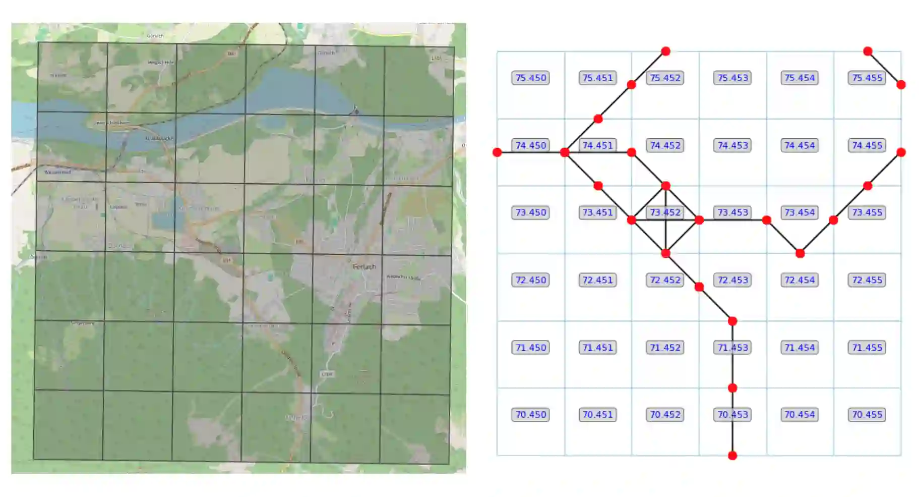 The Spatial Knowledge Graphs (SKG) are experiencing growing adoption as a means to model real-world entities, proving especially invaluable in domains like crisis management and urban planning. Considering that RDF specifications offer limited support for effectively managing spatial information, it's common practice to include text-based serializations of geometrical features, such as polygons and lines, as string literals in knowledge graphs. Consequently, Spatial Knowledge Graphs (SKGs) often rely on geo-enabled RDF Stores capable of parsing, interpreting, and indexing such serializations. In this paper, we leverage grid cells as the foundational element of SKGs and demonstrate how efficiently the spatial characteristics of real-world entities and their attributes can be encoded within knowledge graphs. Furthermore, we introduce a novel methodology for representing street networks in knowledge graphs, diverging from the conventional practice of individually capturing each street segment. Instead, our approach is based on tessellating the street network using grid cells and creating a simplified representation that could be utilized for various routing and navigation tasks, solely relying on RDF specifications.