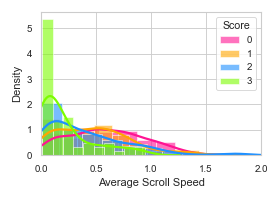 翻译:判断文本的可读性有许多重要的应用,例如在进行文本简化时或在为语言学习者寻找阅读材料时。在本文件中,我们提交了一份518名参与者的研究报告,其中调查滚动行为与文本可读性的关系。我们公布我们的数据集,并表明:(1) 读者与文本互动的方式在统计上有很大差异,取决于文本水平,(2) 这类措施可用于预测文本的可读性,(3) 读者的背景影响其阅读互动和造成文本困难的因素。