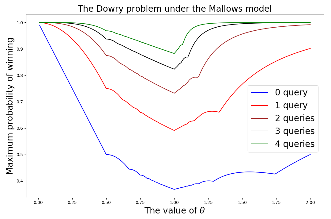翻译:我们引入了在Mallows 模式生成的按级排列名单中选择最佳候选人的询问问题。 在这种背景下,我们提出了一个候选人名单,根据类似Gaussian式的分布分布进行排列,目的是通过顺序面试程序确定排名最高的候选人,不允许对被否决的候选人重新进行面试;新的模型假设是,在进行甄选时能够询问一位Genie。查询提供了一个答案,说明有关候选人是否是排名最高的候选人。如果Genie确认询问,甄选程序将终止。否则,连续考试将持续到找到一个新的可能最理想的候选人为止。我们的结果包括,通过数字评价以及预期的面试次数来准确确定,直到找到最佳候选人或完成面试过程。尽管问题与Dowry问题有相似之处,有吉尔伯特和莫斯勒的多重选择,但拟议的Genie模式与它有很大不同,因为它允许及早停止和处理非统一的候选人面试分配。