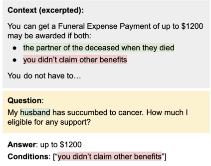 翻译:一些问题的答案不尽相同, 也就是说, 答案在不同条件下是不同的。 使用条件来区分答案并提供补充信息支持答案。 在本文中, 我们研究一项更具挑战性的任务, 答案受一系列逻辑互动条件的限制, 这要求对确定答案的正确性的条件进行逻辑推理。 更具有挑战性的是, 我们只为一组条件提供证据, 所以有些问题可能没有决定性的答案。 在这种情况下, 要求模型寻找可能的答案, 并确定需要满足的条件来纠正答案。 我们为这项具有挑战性的推理任务提出了一个新的模型, 即 TReasoner 。 TReasoner 包含一个包含要求模块、 推理模块和一代模块( 如果答案是自由格式的文本宽幅 ) 。 TReasoner 在两个有条件的 QA数据集基准上取得了最先进的表现, 3- 10 点比先前的状态表现快。