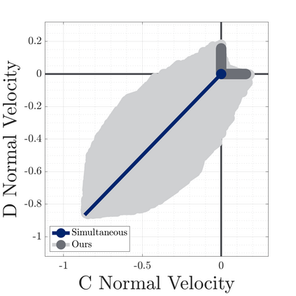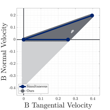 翻译:机器人操纵和移动往往同时发生几乎同时发生的碰撞 -- -- 例如脚跟和脚步的脚跟和脚趾撞击 -- -- 其结果对撞击发生的顺序极为敏感。机器人模拟器通常缺乏预测此顺序的准确性,而是选择一个偏激的。当模型控制器和模拟中学习的政策被置于真正的机器人身上时,这种差异会降低性能。我们最终将这一问题与一套固定价值的僵硬体模型相调和,该模型产生一系列广泛的物理上合理的同时摩擦效应结果。我们首先将Routh的撞击模型扩展为多重影响,将其作为一种差异包容(DI)重新组合,并表明任何解决方案都会在有限的时间内解决所有影响。我们把这一模型作为状态考虑,将它嵌入另一个模型,以捕捉僵硬体动态的连续时间演变,并保证解决方案的存在。我们最后将同时影响模拟作为线性互补问题(LCP)进行模拟,并开发一种匹配后冲击速度的概率完整的算法。我们用从操纵和脚动中提取的几个例子展示了我们的方法。