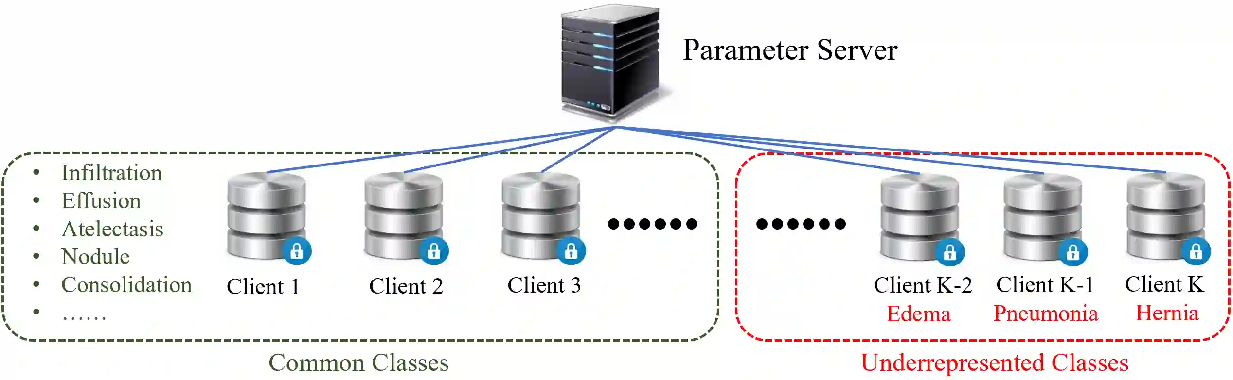 翻译:使用分散化数据进行联邦培训是缓解医疗领域数据稀缺的一个有希望的新研究方向,然而,与一般物体识别任务中常见的大规模全标签全标签数据相比,当地医疗数据集更有可能仅仅对一组感兴趣的类别有附加说明的图像,因为注释成本高。在本文中,我们认为一个实际但探索不足的问题,即代表性不足的类别只有很少的标签实例,并且只存在于联邦系统的几个客户中。我们表明,标准化的联邦化学习方法未能学习具有极端等级不平衡的强有力多标签分类标签,而未能通过提出新的联邦化学习框架(FedFew)加以解决。FedFew由三个阶段组成,第一阶段利用联邦化的自我监督学习学习学习学习班级的学习。在第二阶段,分散化部分标签数据被用于学习通用分类的基于能源的多标签分类器。最后,基于能源和基于原型近邻模型的近级模型模型模型检测到代表性的分类,并用新的联合化学习框架(FedFedFew) 。我们建议通过少数阶段的基底基比值来测试它。