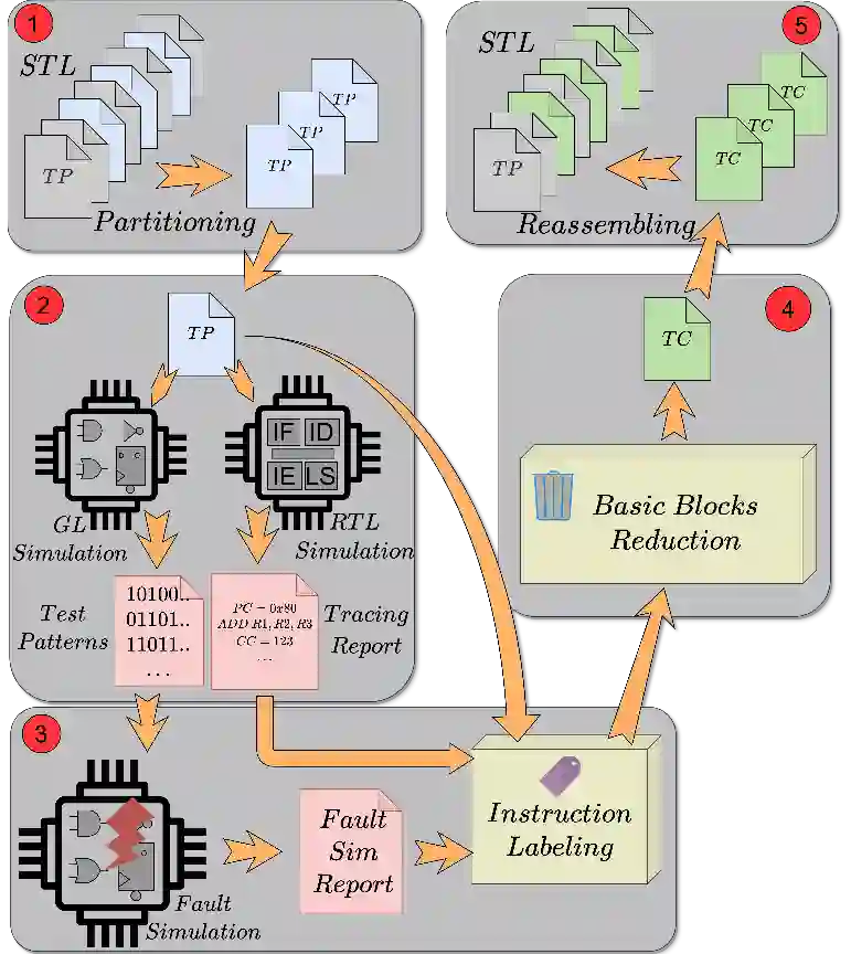 翻译:在考虑安全临界系统时(例如在机器人、航空航天和汽车应用中),必须对基于处理器的装置进行实地测试。在现场测试期间,根据每种情况的具体限制,可以采取不同的解决办法。在过去几年里,由IP或半导体公司开发的自测试图书馆(STL)被广泛采用。鉴于现场测试的严格限制,STL的规模和时间是一个关键参数。这项工作引入了一种新颖的方法来压缩属于STL的功能测试程序。提议的方法基于分析(逻辑模拟)每项指令所执行的微结构构造操作与其传播对任何可观测产出的缺陷影响的能力之间的相互作用,将所需的缺陷模拟减少到仅一个。拟议的压缩战略通过采用RISC-V处理器和来自不同代代战略的若干测试程序得到验证。结果显示,拟议的压缩方法可以将测试程序的时间缩短到93.9%,其持续时间可以减少到95%,对过失范围影响最小。