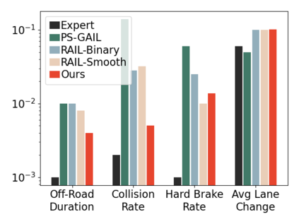 翻译:在这项工作中,我们提出了一个反应剂模型,它可以在不包含最初目的的情况下确保安全,其方法是只从专家数据中学习高层决定,在共同学习的分散障碍证书指导下,通过低级别分散控制器学习高级决定。 经验性结果表明,我们学习的公路用户模拟模型可以与最新模拟学习和纯控制方法相比,在安全方面实现显著改善,同时与人类代理物相似,因为与专家数据有较小的差错。 此外,我们学习的反应剂展示了更好地推广到看不见的交通条件,对其他道路使用者作出更好的反应,从而可以帮助理解如何务实地应对规划问题。