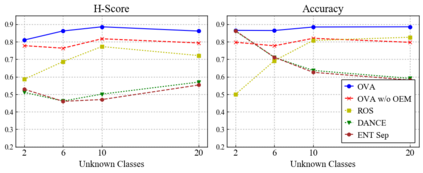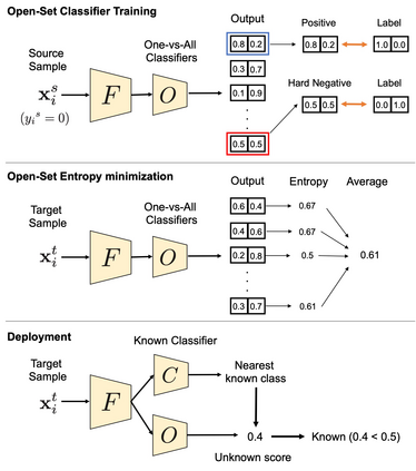 翻译:通用域适应 (UNDA) 旨在处理两个数据集之间的域档和类别档,其中主要的挑战在于转移知识,同时拒绝在标签源数据中不存在、但在未标签目标数据中存在的未知类别。 现有方法根据验证或未知样本的预定义比例,手工设定了拒绝未知样本的阈值, 但这一策略不切实际。 在本文中, 我们提出一种方法, 使用源样本来学习阈值, 并将其调整到目标域。 我们的想法是, 源域中最小的分类间距离应该是决定目标中已知或未知的值的良好阈值。 为了学习分类间和分类内距离, 我们提议使用标签源数据为每个类别培训一个一至五的分类器。 然后, 我们通过最小化分类酶, 将开放式定分级器调整到目标域。 由此产生的框架是UNDA的所有基线中最简单的, 并且对超分度但差值的基线值不敏感。