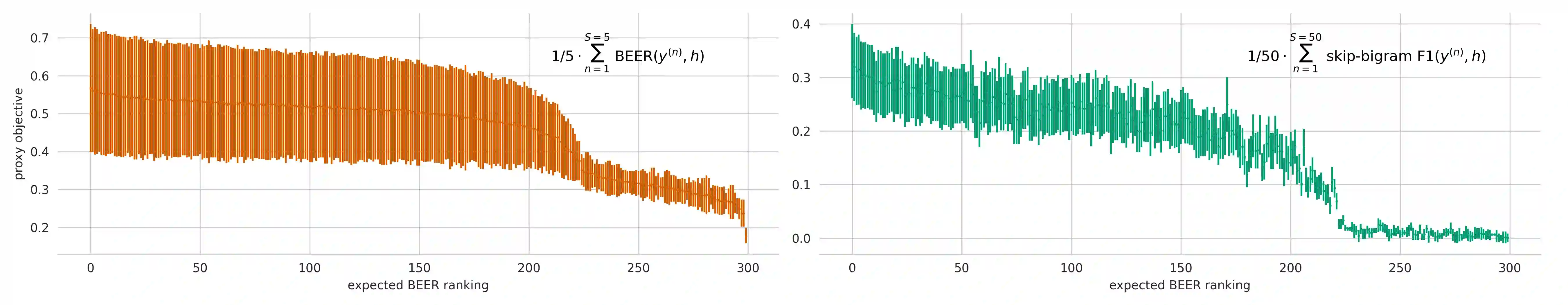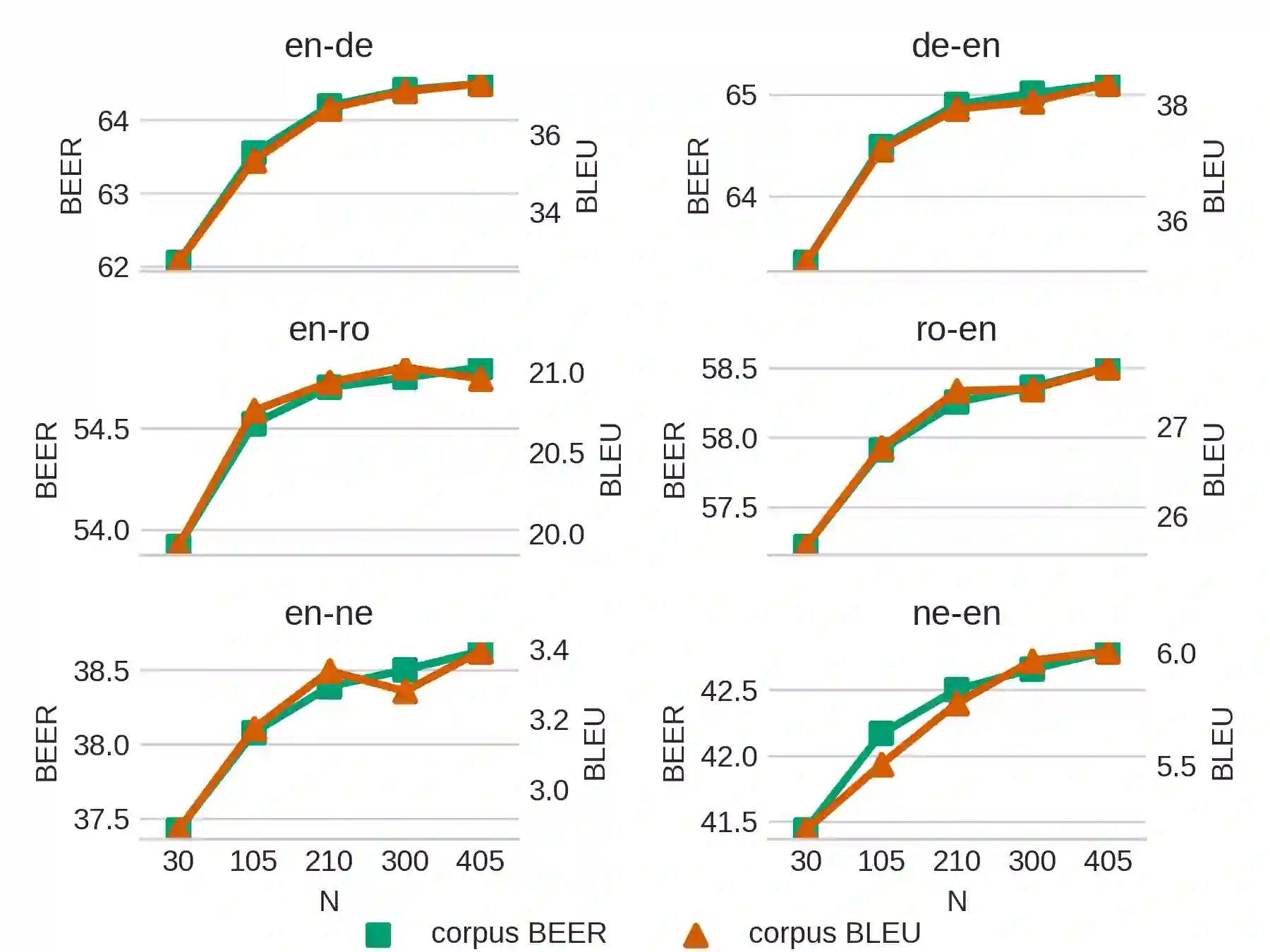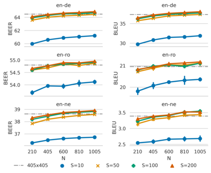 翻译:在NMT中,我们搜索模型分布模式以形成预测。 通过波束搜索发现的模式和其他高概率翻译往往在很多方面都不够充分。这妨碍了通过更好的搜索来提高翻译质量,因为这些奇特的翻译最终是由解码算法所选择的,这个问题被称为光束搜索诅咒。最近,提出了一种接近最小贝叶风险(MBR)解码的替代决定规则,该规则可能不会受到同样的问题的影响。我们分析这一近似法,确定它不等同于横梁搜索诅咒。然后我们设计近似法,将勘探成本与对预期效用的可靠估计成本相提并论。这样可以创造更大的假设空间,我们证明这样做是有益的。我们还表明,寻求模式的战略可以帮助构建有希望的假设的契约系列,而且MBR在确定这些假设的正确翻译方面是有效的。我们实验了三种不同的语言:英语对德文、罗马尼亚文和尼泊尔文。