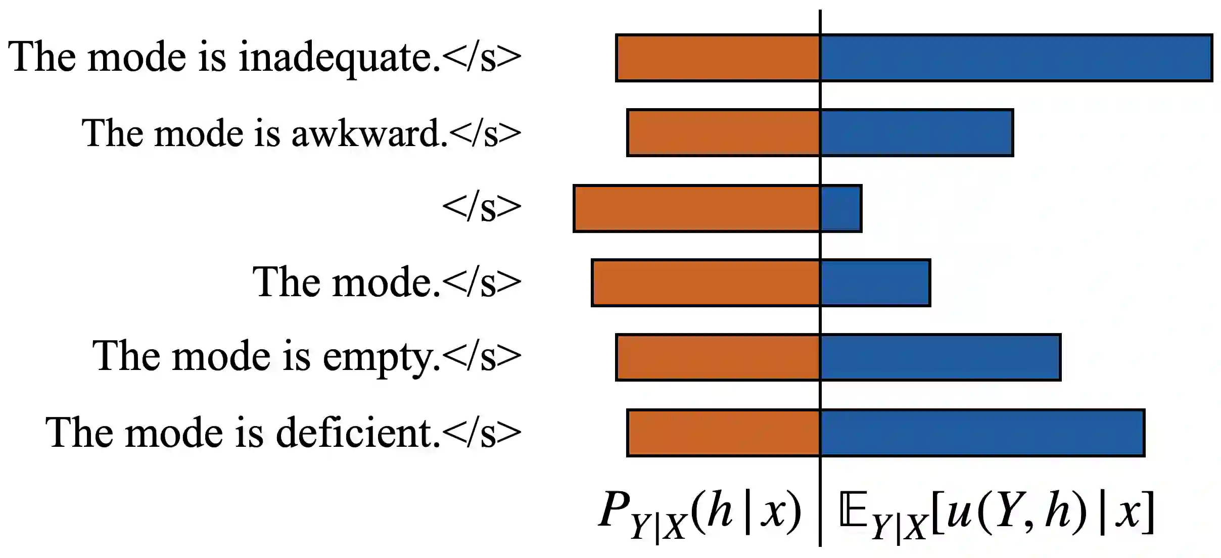In NMT we search for the mode of the model distribution to form predictions. The mode and other high-probability translations found by beam search have been shown to often be inadequate in a number of ways. This prevents improving translation quality through better search, as these idiosyncratic translations end up selected by the decoding algorithm, a problem known as the beam search curse. Recently, an approximation to minimum Bayes risk (MBR) decoding has been proposed as an alternative decision rule that would likely not suffer from the same problems. We analyse this approximation and establish that it has no equivalent to the beam search curse. We then design approximations that decouple the cost of exploration from the cost of robust estimation of expected utility. This allows for much larger hypothesis spaces, which we show to be beneficial. We also show that mode-seeking strategies can aid in constructing compact sets of promising hypotheses and that MBR is effective in identifying good translations in them. We conduct experiments on three language pairs varying in amounts of resources available: English into and from German, Romanian, and Nepali.