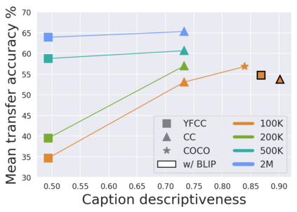 翻译:发展CLIP[Radford等人,2021]已经引发了一场辩论,讨论语言监督是否能够产生比传统的只显示图像的方法更具有可转移性的形象模型。我们的工作研究是通过仔细控制地比较两种方法来研究这一问题,即它们是否有能力学习概括到下游分类任务的表述。我们发现,当培训前数据集达到某些标准时 -- -- 它足够大,含有低变异性的描述性说明 -- -- 仅显示图像的方法与CLIP的传输性能不匹配,即使它们受过更多的图像数据的培训。然而,与人们可能期望的相反,有些实际环境没有达到这些标准,其中通过字幕增加监管实际上有害。我们根据我们的调查结果,设计了简单的处方,使CLIP能够更好地利用现有培训前数据集中的语言信息。