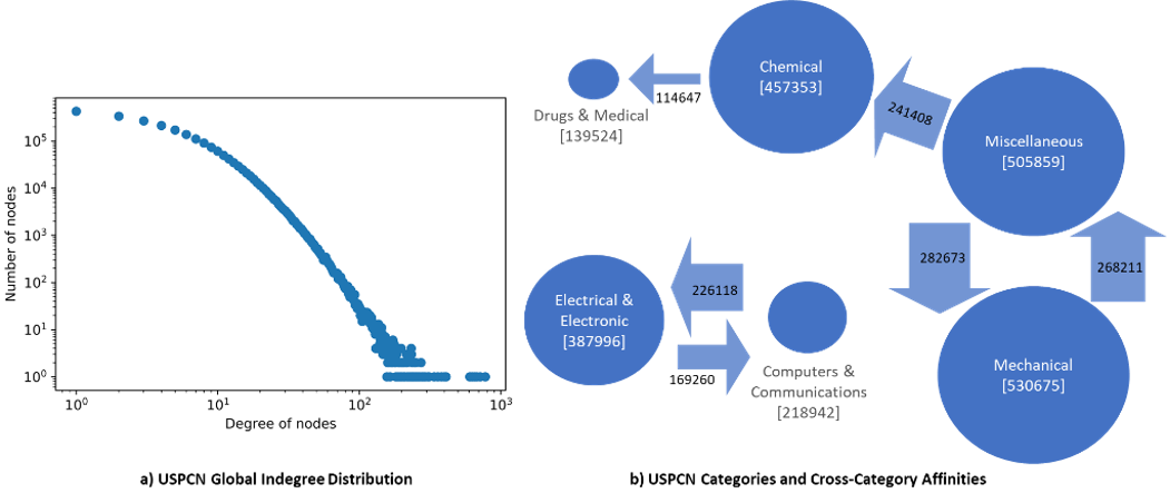 翻译:在许多网络中,一个顶点的度量是其受欢迎程度的衡量标准。过去的研究研究了整个网络的度分布。在美国专利引用网(USPCN)中,专利被分为类别和亚类。自然产生的一个问题是:专利如何从各种(子)类别中获得受欢迎程度?我们分析一个同一类别中的当地度分布来回答这个问题。同一类别中的专利的引用(度)表明其内部受欢迎程度,而跨类引用则表明其外部受欢迎程度。我们分析了美国专利引用网各级的内部和外部度分布,以了解专利在各种(子)类别中的内部和外部受欢迎程度如何不同。我们发现,所有(子)类别都具有决定内部和外部专利受欢迎程度的本地偏好,决定内部和外部的普惠性。不同的类别是:C1组、C2组和C3组可能不同意在C1中流行专利。一般而言,专利受欢迎程度似乎是一种具有子类别(甚至类别)的高度本地现象,决定它们自己的专利独立于其他(子)类别。