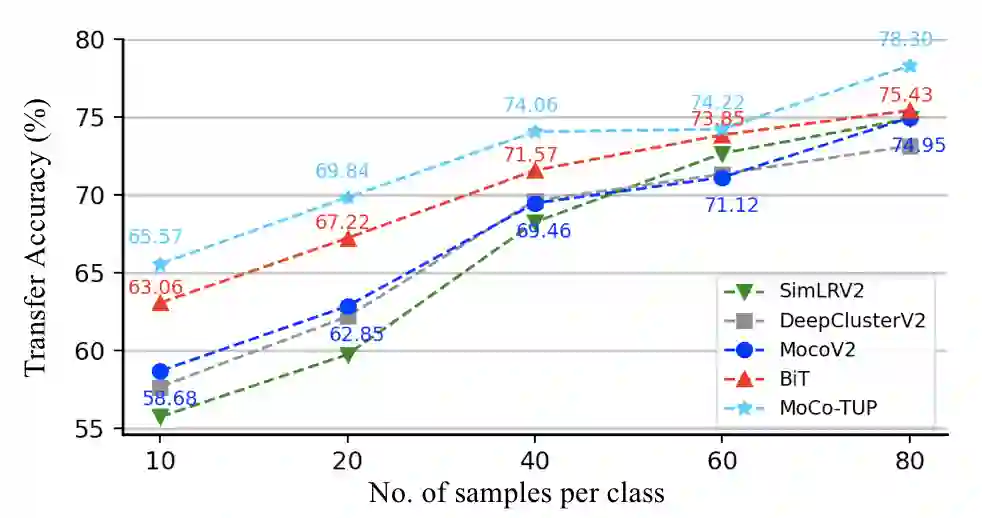 翻译:未经监督的预培训取得了巨大成功,许多近期工程显示,未经监督的预培训可以比下游目标数据集的监督前培训取得可比甚至稍好一些的转让性能。 但在本文件中,我们发现,当目标数据集的标签样本极少时,在微调、\ie、少数标签传输方面,这一结论可能无法维持。我们从组群角度分析可能的原因:(1) 目标样本的集群质量对少数标签的传输非常重要;(2) 尽管对比式学习对于学习如何分组至关重要,但由于缺乏标签监督,其集群质量仍然低于受监督的预培训。根据分析,我们饶有兴趣地发现,只有将某些未加标签的目标域纳入未经监督的预培训,才能提高集群质量,随后通过受监督的预培训缩小传输性能差距。这一发现还激励我们提出一个新的渐进式、少数标签的真应用程序转移性算法,目的是在有限的注解预算下最大限度地实现传输性能。为了支持我们的分析和拟议方法,我们只能在九个不同目标数据集上进行广泛的实验。实验结果显示,我们提议的方法可以大大提升前的少数标签性转移性。