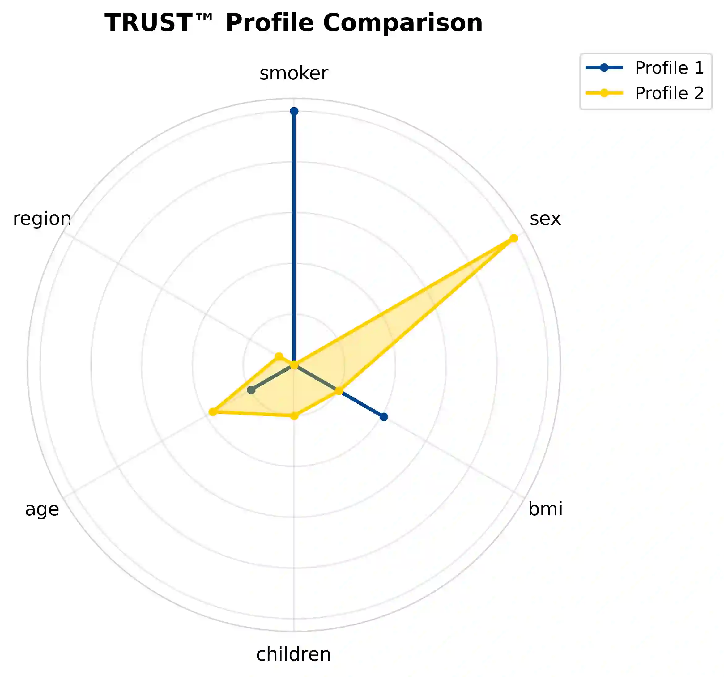 翻译:雷达图广泛应用于多变量数据可视化及多轮廓特征对比。然而,当特征值在圆周上幅值剧烈交替变化时,会导致多边形区域塌陷,扭曲相对差异关系,从而严重损害雷达图的视觉清晰度。本研究提出一种排列优化策略,通过重新排序特征以同时最小化多个轮廓的多边形"尖刺度"。该方法针对中等数量特征采用组合优化(穷举搜索),并运用字典序极小极大准则:首先考虑整体平滑度(平均跳跃值),再以最大单次跳跃值作为平局决胜依据。此方法能保留更多全局信息,并生成视觉平衡的布局。我们探讨了算法复杂度、实际边界条件,以及与现有方法的关联——现有方法或改变可视化形式(如OrigamiPlot),或学习排序规则(如Versatile Ordering Network)。通过包含两个轮廓和$p=6$个特征的示例(排序前后对比),展示了该方法在视觉质量上的改进效果。关键词:数据可视化,雷达图,组合优化,极小极大优化,特征排序