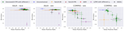 翻译:我们提出了一个优化框架,在受保护属性出现噪音扰动的情况下学习公平分类。 与先前的工作相比,我们的框架可以用一个非常普通的线性和线性公平约束类别来使用,可以处理多个非二进制受保护属性,而产出则可以处理多个非二进制受保护属性,同时对准确性和公平性提供可辨证的保障。 简而言之,我们表明,我们的框架可以被用于实现统计率或虚假的正价公平保证,而准确性损失最小,即使噪音很大,在两个真实世界的数据集中也是如此。
