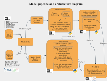 A novel coronavirus disease has emerged (later named COVID-19) and caused the world to enter a new reality, with many direct and indirect factors influencing it. Some are human-controllable (e.g. interventional policies, mobility and the vaccine); some are not (e.g. the weather). We have sought to test how a change in these human-controllable factors might influence two measures: the number of daily cases against economic impact. If applied at the right level and with up-to-date data to measure, policymakers would be able to make targeted interventions and measure their cost. This study aims to provide a predictive analytics framework to model, predict and simulate COVID-19 propagation and the socio-economic impact of interventions intended to reduce the spread of the disease such as policy and/or vaccine. It allows policymakers, government representatives and business leaders to make better-informed decisions about the potential effect of various interventions with forward-looking views via scenario planning. We have leveraged a recently launched open-source COVID-19 big data platform and used published research to find potentially relevant variables (features) and leveraged in-depth data quality checks and analytics for feature selection and predictions. An advanced machine learning pipeline has been developed armed with a self-evolving model, deployed on a modern machine learning architecture. It has high accuracy for trend prediction (back-tested with r-squared) and is augmented with interpretability for deeper insights.