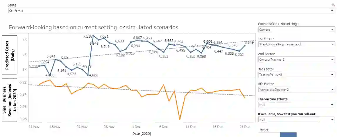 翻译:新的冠状病毒疾病(后来改名为COVID-19)已经出现,并导致世界进入一个新的现实,有许多直接和间接因素对其产生影响。有些是人类控制的(例如干预政策、流动性和疫苗);有些不是(例如天气);我们试图检验这些人类控制因素的变化如何影响两种措施:对经济影响的日常案例数量;如果在正确的级别上应用并采用最新的数据来衡量,决策者将能够采取有针对性的干预措施并衡量其成本。这项研究的目的是提供一个预测性的直观框架,用以模拟、预测和模拟COVID-19传播以及旨在减少该疾病蔓延的干预措施的社会经济影响,例如政策和/或疫苗。我们试图检验这些人类控制因素的变化如何影响两种措施:通过情景规划对各种具有前瞻性观点的干预措施的潜在影响作出更知情的决定。我们利用了最近推出的公开源COVID-19大数据平台,并使用已公布的研究来寻找潜在的相关变量(相对性)以及模拟COVID-19的传播和模拟传播;以及旨在减少该疾病蔓延的现代数据质量检查和结构的更新。我们利用已部署的高级数据结构来进行深入的精确性预测。