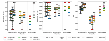 翻译:临床机学日益采用多式形式,以结构化表格形式和自由文本等非结构化形式收集。我们提出探索多式联运临床数据集的公平性的新任务,对下游医疗预测任务采用均等的几率。为此,我们调查一种模式的、不可知的公平算法,即同等的事后处理,并将其与文本特有的公平算法进行比较:有偏向的临床词嵌入。尽管有偏向的字嵌入没有明确地解决受保护群体同等的几率问题,但我们表明,针对文本的公平方法可以同时实现业绩和传统公平概念之间的良好平衡。我们希望我们的论文能够激发今后在临床NLP和公平的关键交叉点上的贡献。这里有完整的源代码:https://github.com/johntiger1/muldmodal_fairity。这里有:https://github.modal_fairity。