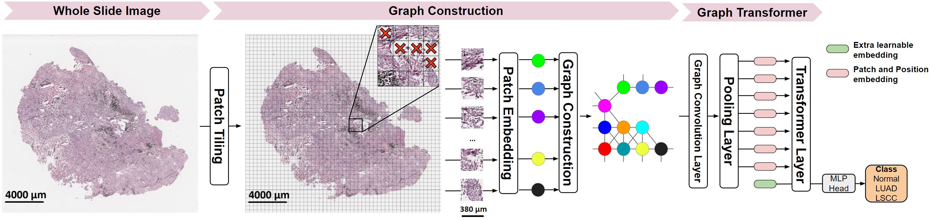 翻译:深度学习是整个幻灯片图像( WSII) 分析的有力工具。 通常, 当进行有监督的深层次学习时, WSI 被分为小的补丁、 培训并汇总结果以估计疾病等级。 但是, 以补丁为基础的方法在培训过程中引入标签噪音, 假设每个补丁与 WSI 标签是独立的, 忽视了在疾病分级中具有重大意义的整体 WSI 级信息。 这里我们展示了一个图形- Transferent (GT), 将一个基于图形的 WSI 代表和一个用于处理病情图图像的视觉变异器, 称为 GTP 。 我们从临床蛋白质分析联合会( CPTAC ) 、 全国肺部筛选试验(NLST) 和癌症基因基因基因组(TC GGGGGGGA) 系统, 并使用GTP 高蛋白色素( LUAT) 和 高价值组织( 常规组织) 数据框架, 我们开发了一个对比学习框架, 也就是了我们所学的Oral- dalalalalalalalalal- dald 数据 。 这让我们用了C 数据框架, 用了C ASaltial- cald 数据 。