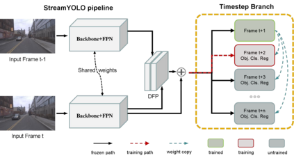 Autonomous driving systems require real-time environmental perception to ensure user safety and experience. Streaming perception is a task of reporting the current state of the world, which is used to evaluate the delay and accuracy of autonomous driving systems. In real-world applications, factors such as hardware limitations and high temperatures inevitably cause delays in autonomous driving systems, resulting in the offset between the model output and the world state. In order to solve this problem, this paper propose the Multi- Timestep Detector (MTD), an end-to-end detector which uses dynamic routing for multi-branch future prediction, giving model the ability to resist delay fluctuations. A Delay Analysis Module (DAM) is proposed to optimize the existing delay sensing method, continuously monitoring the model inference stack and calculating the delay trend. Moreover, a novel Timestep Branch Module (TBM) is constructed, which includes static flow and adaptive flow to adaptively predict specific timesteps according to the delay trend. The proposed method has been evaluated on the Argoverse-HD dataset, and the experimental results show that it has achieved state-of-the-art performance across various delay settings.