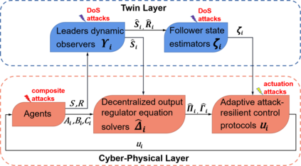 翻译:本文研究了数字孪生方法下,对抗复合攻击(包括拒绝服务攻击、错误数据注入攻击、伪装攻击和行动攻击)的异构多智能体系统的分布式鲁棒输出约束控制。为了提高安全性和隐私性,我们使用数字孪生中的孪生层(TL)将上述问题分解成两个子问题:TL上的防御协议抵御拒绝服务攻击,以及在物理层上抵御行动攻击的防御协议。首先,考虑到领航者动态模型的建模误差,我们引入分布式观察器,在TL上为每个从从者重构领航者动态模型,以应对拒绝服务攻击。其次,在重构的领航者动态模型的基础上,设计分布式估计器以估计从者的状态。第三,在重构的领航者动态模型的基础上,我们设计了分散求解器,在CPL上计算输出调节器方程。第四,在重构的领航者动态模型的基础上提供了分散的自适应抵御无界行动攻击的控制方案。此外,我们还应用上述控制协议证明了从者可以实现均匀最终有界(UUB)收敛,并且明确确定了UUB收敛的上限。最后,我们提供了两个仿真例子,以展示所提出的控制协议的有效性。