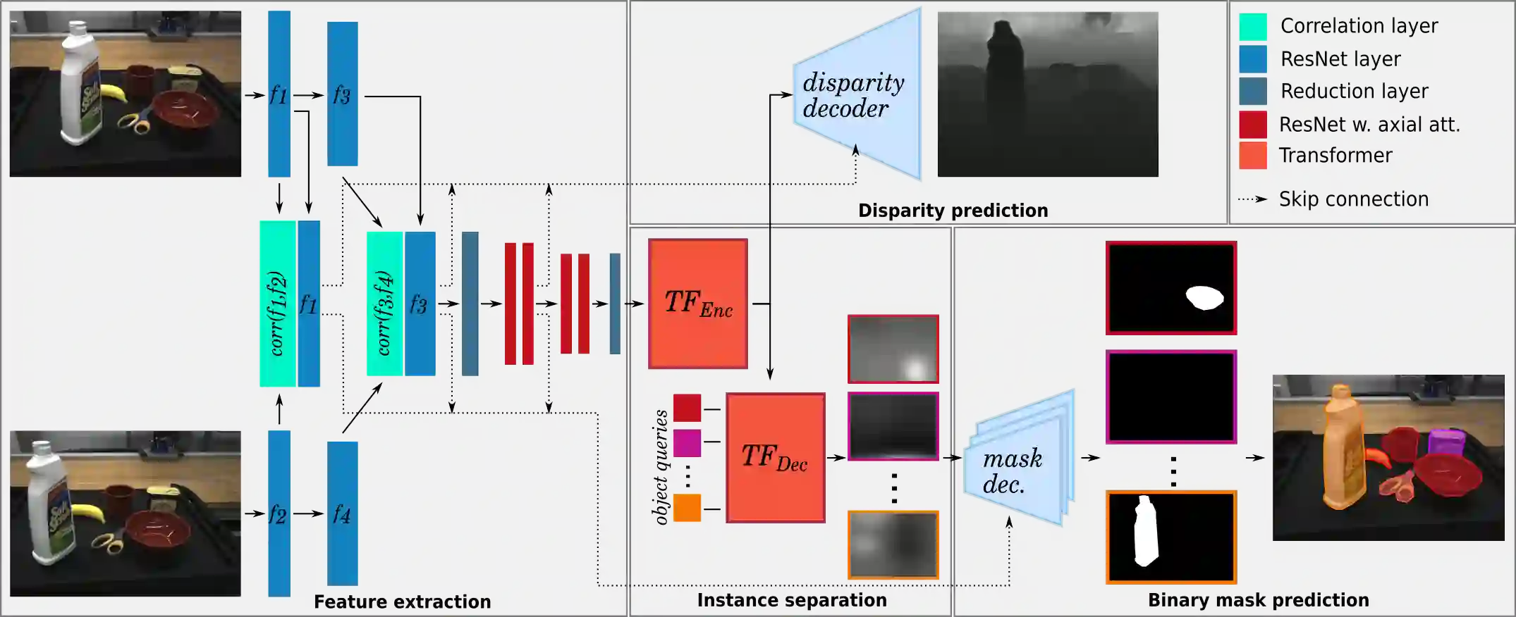 翻译:尽管体能感知是许多自主机器人应用的关键先决条件,但大多数方法仅部分地侧重于已知的物体类别来解决这个问题。然而,对于在动态和杂乱环境中互动的机器人,这不现实,严重限制了潜在应用的范围。因此,我们建议采用新的物体感知度分解方法,不需要事先对物体提供任何语义或几何信息。与现有工作相比,我们没有明确使用深度数据作为输入,而是依靠洞察到微微的视图变化,例如由立体图像配对提供的微小的视图变化,往往足以确定对象边界,从而确定分块对象。我们以立体传感器的多功能为重点,我们使用基于变压器的架构,直接从输入图像组合绘制到对象实例的图像。这具有主要优势,即不要求事先对物体进行音响和可能不完整的深度地图作为输入,我们使用原始图像配对来推断对象实例和密集深度地图。在几个不同的应用领域进行的实验中,我们展示了我们的立体变换器(INSTK)变换器(INSTRA)的算法将直接绘制当前状态模型。