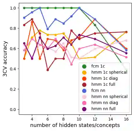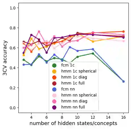 翻译:时间序列分类是十分流行的机器学习任务之一。 在本文中, 我们探索了隐性马尔科夫模型( HMM) 用于时间序列分类的应用。 我们区分了两种HMM应用模式。 首先, 为每类设计了一个单一模型; 第二, 为每时间序列设计了一个 HMM 。 然后, 我们将两种分类构建方法转移到 Fuzzy Cognitive Maps 领域。 确定的四种模式, HMMN (HMM, 每系列一个)、 HMM 1C (HMM, 每类一个)、 FCM NN 和 FCM 1C 进行一系列实验研究。 我们比较了不同模型的性能, 并调查其超参数对时间序列分类准确性的影响。 实证评估显示了单系列方法的明显优势。 结果显示, HMMM 和 FCM 之间的选择应该取决于数据设置 。