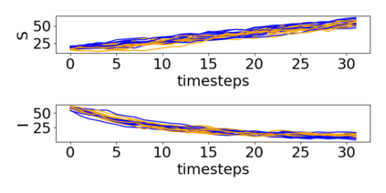 翻译:Markov人口模型是一种广泛的形式主义,用来模拟复杂系统的动态,在系统生物学和其他许多领域应用。相关的Markov连续时间的随机过程经常通过模拟进行分析,对于大型或硬体系统来说,这种模拟成本很高,特别是在需要进行大量模拟时(例如在多尺度模型中)。减少计算负荷的战略是抽取人口模型,用更简单的随机模型取而代之,以更快的模拟速度。我们在此探讨这一想法,在以往的工程的基础上,在连续空间和离散时间建造一个能够产生随机轨迹的生成器。这一生成器是自动从基因模拟的自动学习的。与以前依靠深层神经网络和Drichlet过程的工程相比,我们探索使用艺术基因化模型的状况,这些模型非常灵活,足以学习完整的轨迹而不是单一的过渡内核。