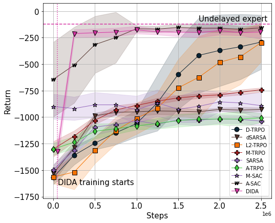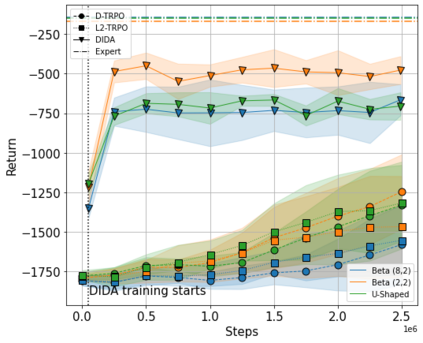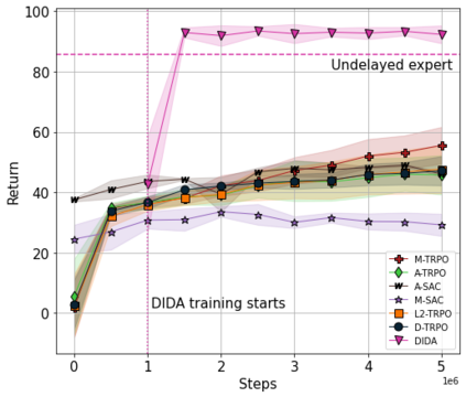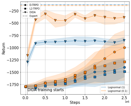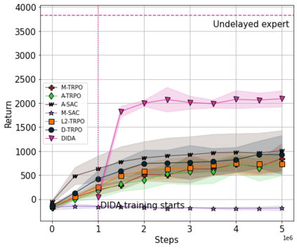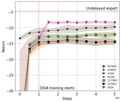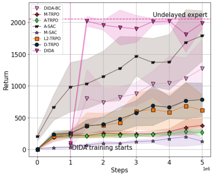 翻译:当代理人的观察或互动被推迟, 经典强化学习工具通常会失败。 在本文中, 我们提出一个简单而新的高效的解决方案。 我们假设, 在未拖延的环境中, 高效的政策是已知的, 或者可以很容易地学到的, 但任务可能会在实践上受到延误, 因此我们想要考虑到这些。 我们提出了一个新奇的算法, “ 延迟与数据集聚合( DIDA ) ”, 以模拟学习方法为基础, 学习如何在未延迟的演示所延缓的环境中采取行动。 我们从理论上分析了将指导 DoDA 实际设计的方法。 这些结果对于延迟的强化学习文献也具有普遍的兴趣, 在平稳的条件下提供延迟和未拖延的任务之间的性能界限。 我们的经验显示, ANDA 在各种任务, 包括机器人传动、 经典控制和 交易上, 取得了出色的性能。