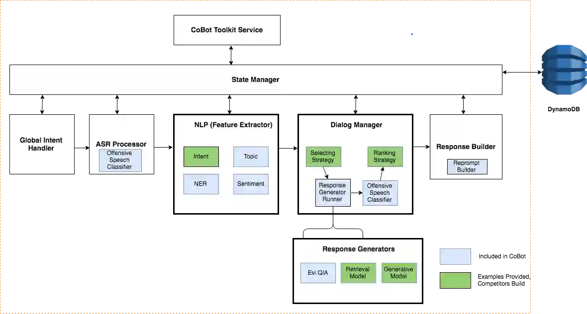 翻译:2018年的竞赛还包括向竞争者提供一系列工具和模型,包括CoBot(Cobotal bott)工具包、主题和对话的频率检测模型、对话评估员以及敏感的内容检测模型。在2018年的第二次竞赛中,大学团队通过在对话模式中利用背景,利用知识图表促进语言理解,处理复杂的言论,建立统计和等级对话管理者,以及利用用户响应的模型驱动信号。2018年的竞赛还包括向竞争者提供一套工具和模型,包括CoBot(Cobot)工具包、主题和对话的频率检测模型、快速、对话评估员和敏感的内容检测模型。在2018年的竞赛中,大学团队和Alexa奖奖团队为实现推进交流性AI科学这一共同目标而取得的进展。我们通过对话的语音识别、公开的域域域域内语言理解、共同思维推理、相对对话的准确度检测模型、对话评估中的相对比例分析员以及自18年的周期以来的合作性平均持续度评估,通过启动以来,我们之间平均水平的频率的排名提高。