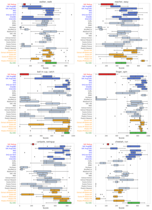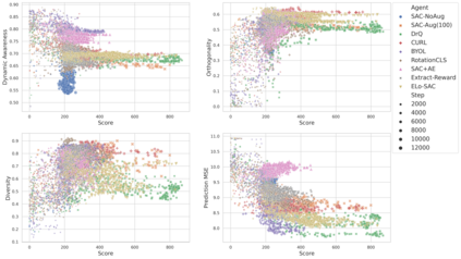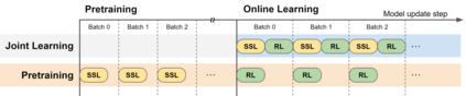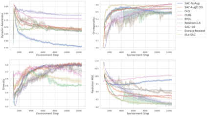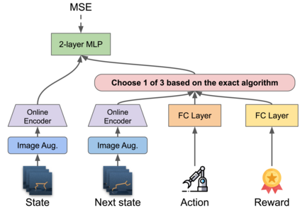 翻译:我们研究的是,自我监督的学习(SSL)能否从像素中改进在线强化学习(RL)?我们扩展了对比式强化学习框架(例如CURL),共同优化SSL和RL损失,对各种自我监督的损失进行大量实验。我们的观察表明,现有SSL的学习框架不能在基线的基础上带来有意义的改进,而只是在使用相同数量的数据和增强力时,才能利用图像增强;我们进一步进行进化搜索,以找到RL多重自我监督损失的最佳组合,但发现即使这种损失组合也未能真正超越仅使用精心设计的图像增强力的方法。通常,在现有框架下使用自我监督的损失降低了RL的性能。我们评估了多种不同环境中的方法,包括真实世界机器人环境,并证实没有单一的自我监督损失或图像增强方法能够控制所有环境,而且目前SL和RL的联合优化框架是有限的。最后,我们用SL+RL的不同方法以及所学的属性,对SL的预培训框架进行了实验性研究。