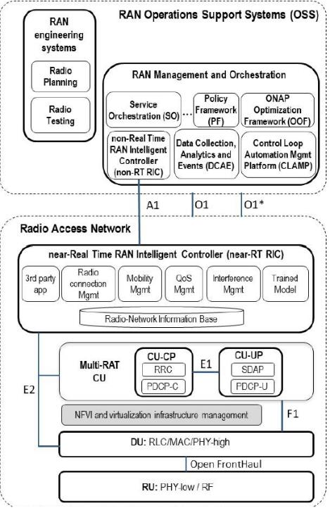 翻译:这一指导性工作旨在概述第五代(5G)无线网络的拟议开放无线电接入网络(O-RAN)的部署情况;O-RAN力求取代硬件专用无线电接入网络(RAN)部件(例如移动管理实体或基地站),包括通用硬件、专门软件和开放式信号界面;5G的虚拟化和网络切除功能使软件能够取代先前的硬件特定功能;软件进一步提供更快的分析,从而支持5G系统长期性要求和先进的使用情景(即增强移动宽带、大规模机器型通信和超耐用的低延迟通信);此外,作为对RAN的软件附件管制,允许将人工智能/机器学习算法纳入RAN管理(特别是在用户平面上);这一整合是O-RAN的目标之一,依靠通用硬件和专用、开放源软件消除对具体设备网络的依赖。