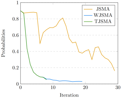 翻译:众所周知,神经网络分类(NNCs)很容易受到恶意对抗性干扰投入的干扰,包括修改一小部分输入特征(称为稀释或0.00美元袭击)的干扰。有效和快速的L_0美元袭击,如广泛使用的JacobianSaliency Saliency Mape攻击(JSMA)对愚弄NNCs(JSMA)来说是实用的,但也有助于提高其稳健性。在本文中,我们通过产出概率和NNNCSN输入特征对JSMA的突出地图进行处罚,从而获得更强大的攻击算法,更好地考虑到每项输入的特性。这导致我们引入了更完善的JSMA(WSMA)和Taylor JSMA(JSMA)的网络版本(JSMA),通过三套不同的数据集(MITS、CIFAR-10和GTSRRRRB)进行各种白箱和黑箱实验,表明这些地图比最初的有目标和非目标版本要快得多。 实验还表明,在某些情况中,我们攻击的SMA-RO_SMalalalalal(比SMA(C_CRB_CR)比SBR)比尚更具有激烈的SM_C_C_CRDRD_C_CRBR_C_CR_R)比尚更快。