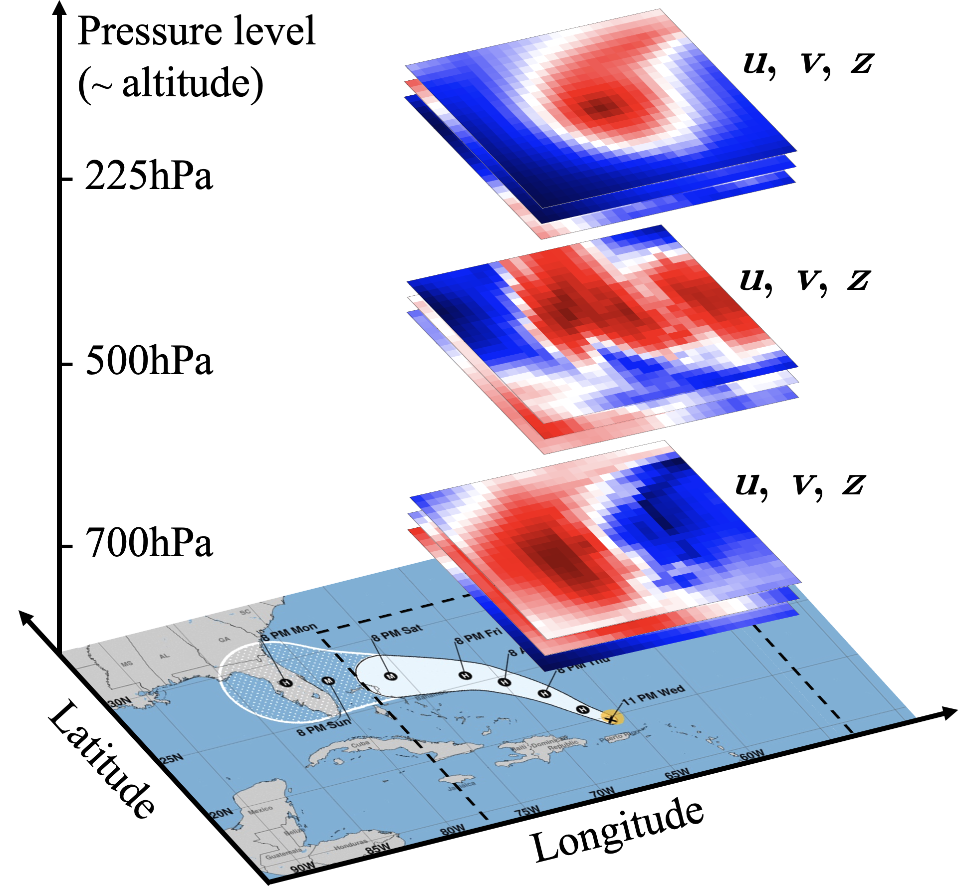 翻译:本文介绍了热带气旋强度和跟踪预报的机器学习(ML)框架,其中结合了多种不同的ML技术和利用多种数据来源。我们称之为Hurricast(HURRRR)的框架,其基础是使用梯度推进树和新型编码解码结构(包括CNN、GRU和变异器组件)的不同数据处理技术的组合。我们提出了一个深功能提取方法,将空间数据与统计数据高效地结合起来。我们的多模式框架释放出根据广泛的数据来源(包括历史风暴数据)以及重新分析大气图像等视觉数据进行预测的潜力。我们评估我们的模式,在2016-2019年的北大西洋和东太平洋盆地24小时前使用目前的业务预测,并显示我们的模式始终超越统计动态模型,与最佳动态模型竞争,同时在数秒内计算预测。此外,将Hurricast纳入业务预测共识模型,导致显著改进5%至15%比NHC正式预测高出5%,从而突出现有方法的补充性。我们总结后,我们的工作展示了目前对北大西洋和东太平洋盆地盆地的模型的模型进行24小时的运行预测,同时显示我们的模型与不同数据来源之间的学习。我们的工作可以进一步学习。