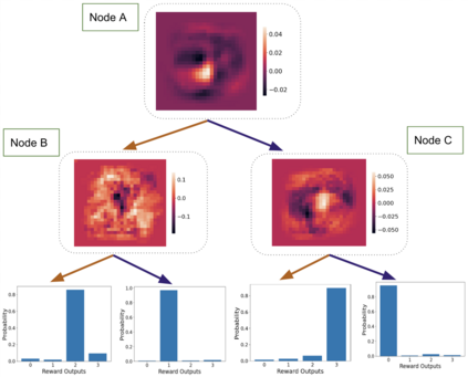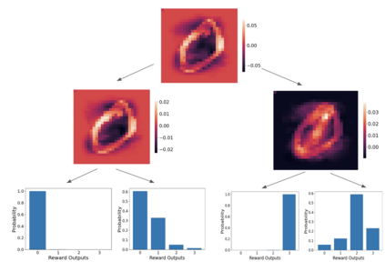 There is an increasing interest in learning reward functions that model human intent and human preferences. However, many frameworks use blackbox learning methods that, while expressive, are difficult to interpret. We propose and evaluate a novel approach for learning expressive and interpretable reward functions from preferences using Differentiable Decision Trees (DDTs). Our experiments across several domains, including Cartpole, Visual Gridworld environments and Atari games, provide evidence that that the tree structure of our learned reward function is useful in determining the extent to which the reward function is aligned with human preferences. We experimentally demonstrate that using reward DDTs results in competitive performance when compared with larger capacity deep neural network reward functions. We also observe that the choice between soft and hard (argmax) output of reward DDT reveals a tension between wanting highly shaped rewards to ensure good RL performance, while also wanting simple, non-shaped rewards to afford interpretability.