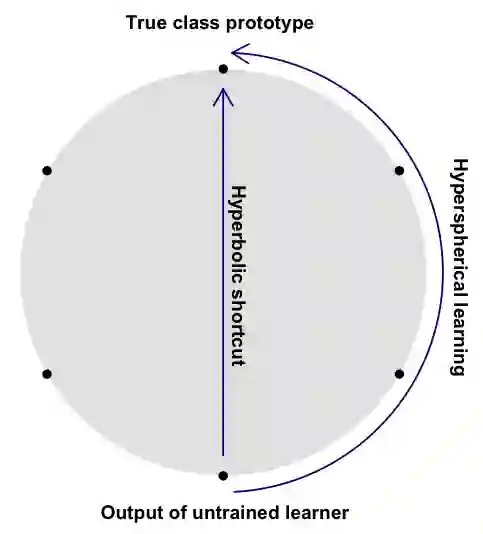 翻译:我们引入了超双曲原型学习, 这是一种受监督的学习类型, 类类标签在双曲空间中以理想点( 无限点) 来代表。 学习是通过最大限度地减少“ 被惩罚的Busemann损失 ” 实现的, 这是一种基于双曲几何的Busemann功能的新的损失函数。 我们讨论了这个设置的一些理论特征 。 特别是, 双曲原型学习等同于一维案例的后勤倒退 。