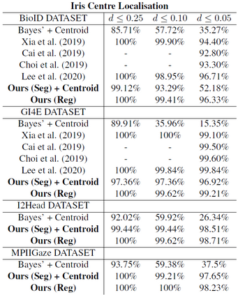 In this research work, we address the problem of robust iris centre localisation in unconstrained conditions as a core component of our eye-gaze tracking platform. We investigate the application of U-Net variants for segmentation-based and regression-based approaches to improve our iris centre localisation, which was previously based on Bayes' classification. The achieved results are comparable to or better than the state-of-the-art, offering a drastic improvement over those achieved by the Bayes' classifier, and without sacrificing the real-time performance of our eye-gaze tracking platform.