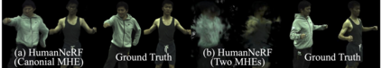 This paper introduces Motion-oriented Compositional Neural Radiance Fields (MoCo-NeRF), a framework designed to perform free-viewpoint rendering of monocular human videos via novel non-rigid motion modeling approach. In the context of dynamic clothed humans, complex cloth dynamics generate non-rigid motions that are intrinsically distinct from skeletal articulations and critically important for the rendering quality. The conventional approach models non-rigid motions as spatial (3D) deviations in addition to skeletal transformations. However, it is either time-consuming or challenging to achieve optimal quality due to its high learning complexity without a direct supervision. To target this problem, we propose a novel approach of modeling non-rigid motions as radiance residual fields to benefit from more direct color supervision in the rendering and utilize the rigid radiance fields as a prior to reduce the complexity of the learning process. Our approach utilizes a single multiresolution hash encoding (MHE) to concurrently learn the canonical T-pose representation from rigid skeletal motions and the radiance residual field for non-rigid motions. Additionally, to further improve both training efficiency and usability, we extend MoCo-NeRF to support simultaneous training of multiple subjects within a single framework, thanks to our effective design for modeling non-rigid motions. This scalability is achieved through the integration of a global MHE and learnable identity codes in addition to multiple local MHEs. We present extensive results on ZJU-MoCap and MonoCap, clearly demonstrating state-of-the-art performance in both single- and multi-subject settings. The code and model will be made publicly available at the project page: https://stevejaehyeok.github.io/publications/moco-nerf.